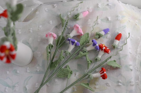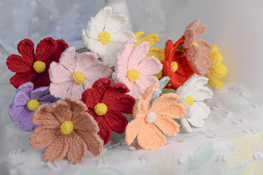 You can create your own bouquet with our crochet flowers, offering more than 30 different types. Enjoy crafting a special bouquet for your loved one.